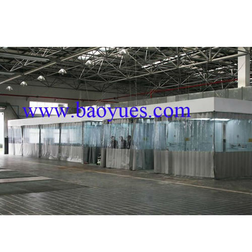 Back side with 50mm EPS wallboard, the other 3 sides with PVC curtains