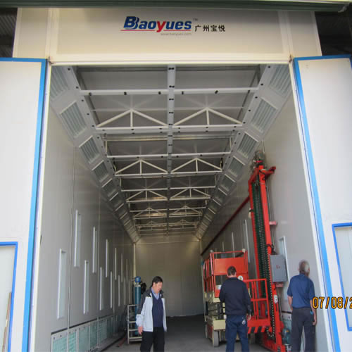 1. The painting gas exhausts from side wall.Working principles of Side Downdraft Paint Booth
