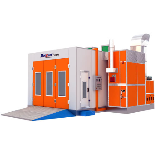 During painting, outside fresh air comes into the heating generators through pre-filter system, enters into the plenum, filtered by ceiling filter and enters into the booth. This process can bring clean, symmetrical and steady-going down airflow for spraying.Parameters of Water Base Spray Booth